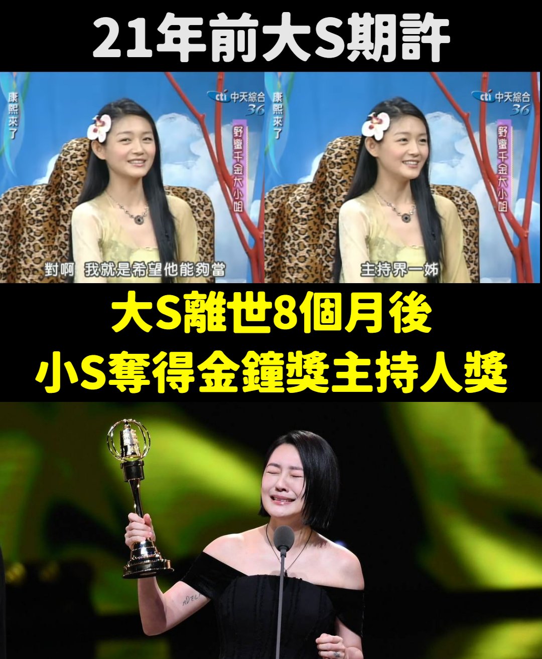 然而長達20年間,小S就再也沒拿過主持人獎,直到昨天晚上終於再度奪得金鐘獎。