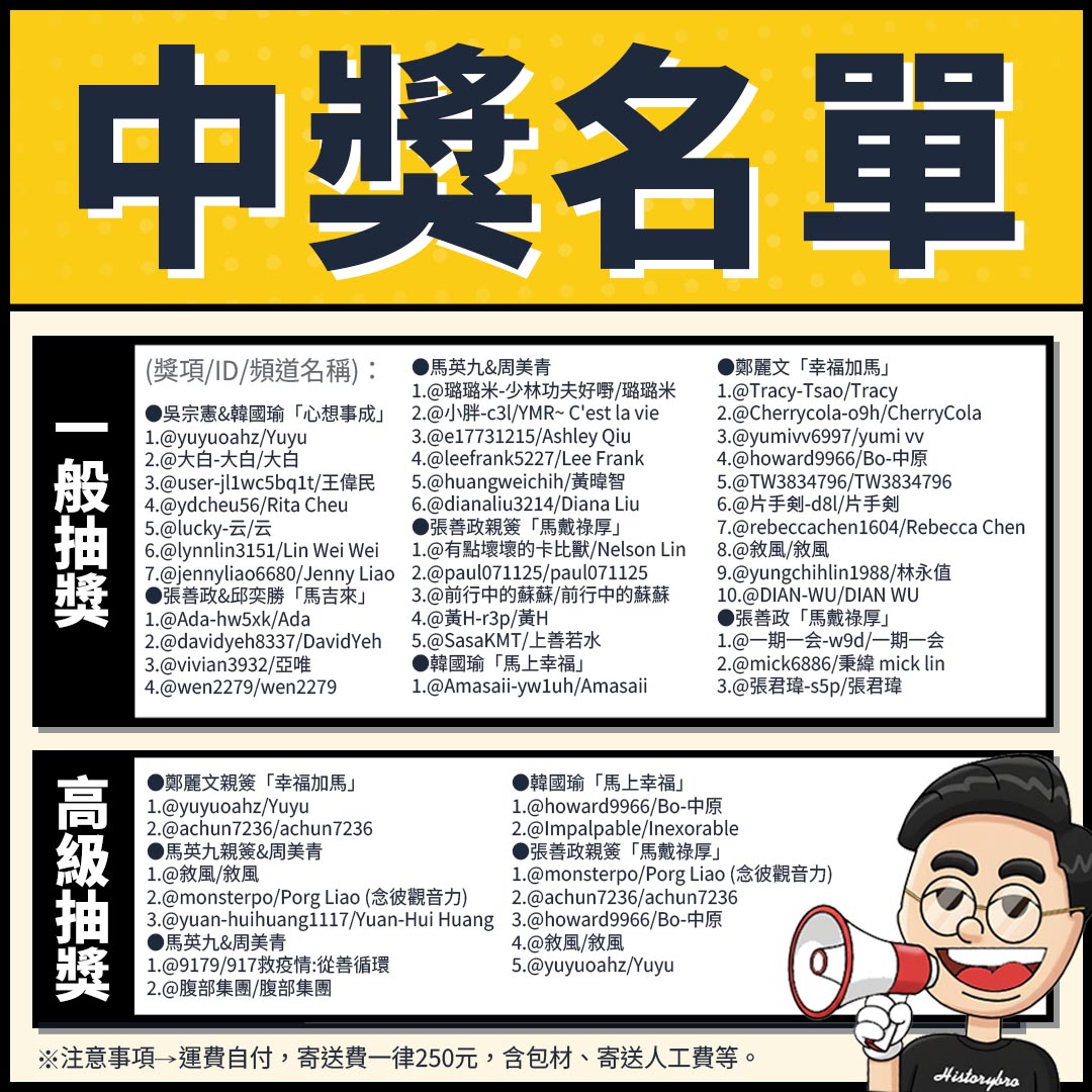 超級感謝會員們的支持~恭喜得獎同學!也非常感謝線上共同參與的所有粉絲!