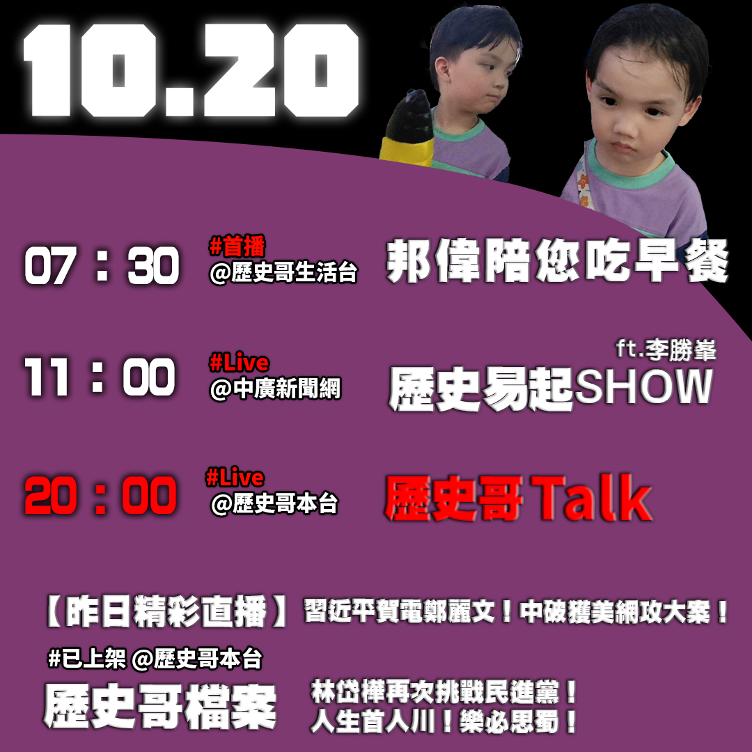 【10/20(一)歷史哥李易修忙什麼?】
