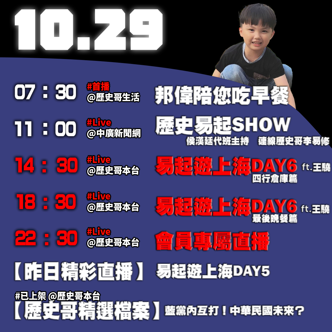 【10/29(三)歷史哥李易修忙什麼?】