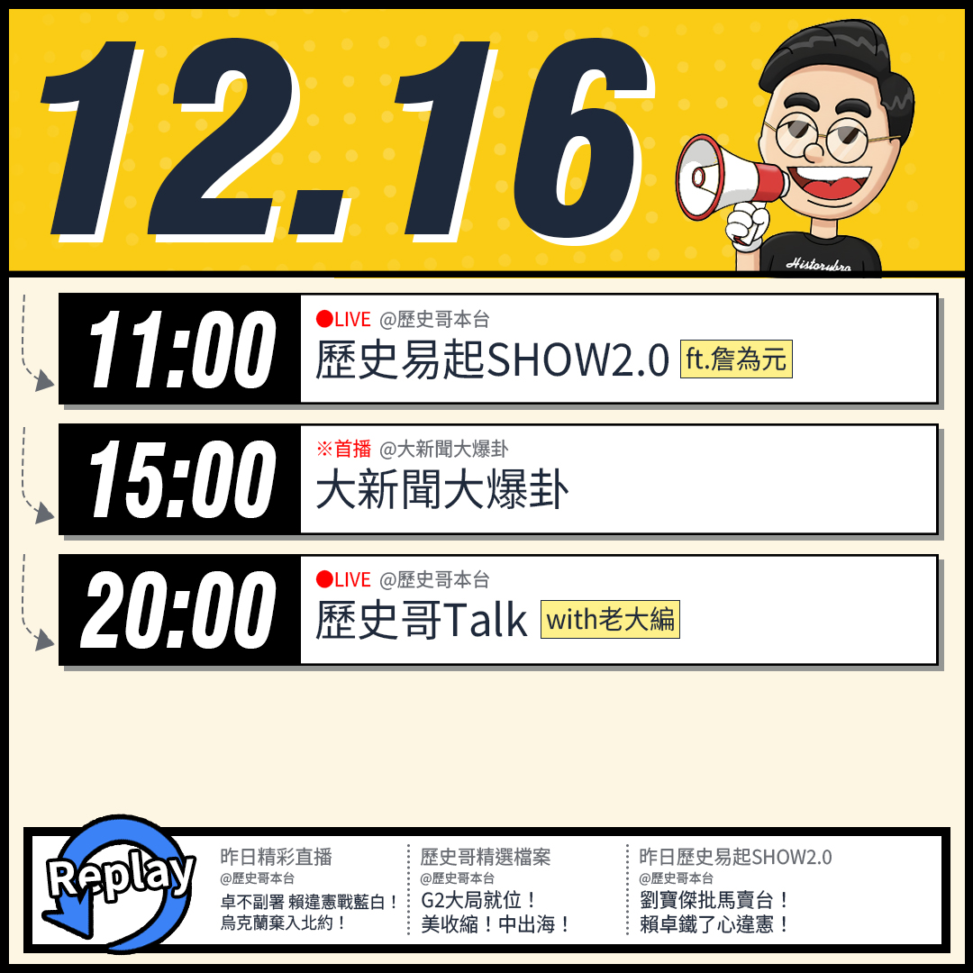 【12/16(二)歷史哥李易修忙什麼?】