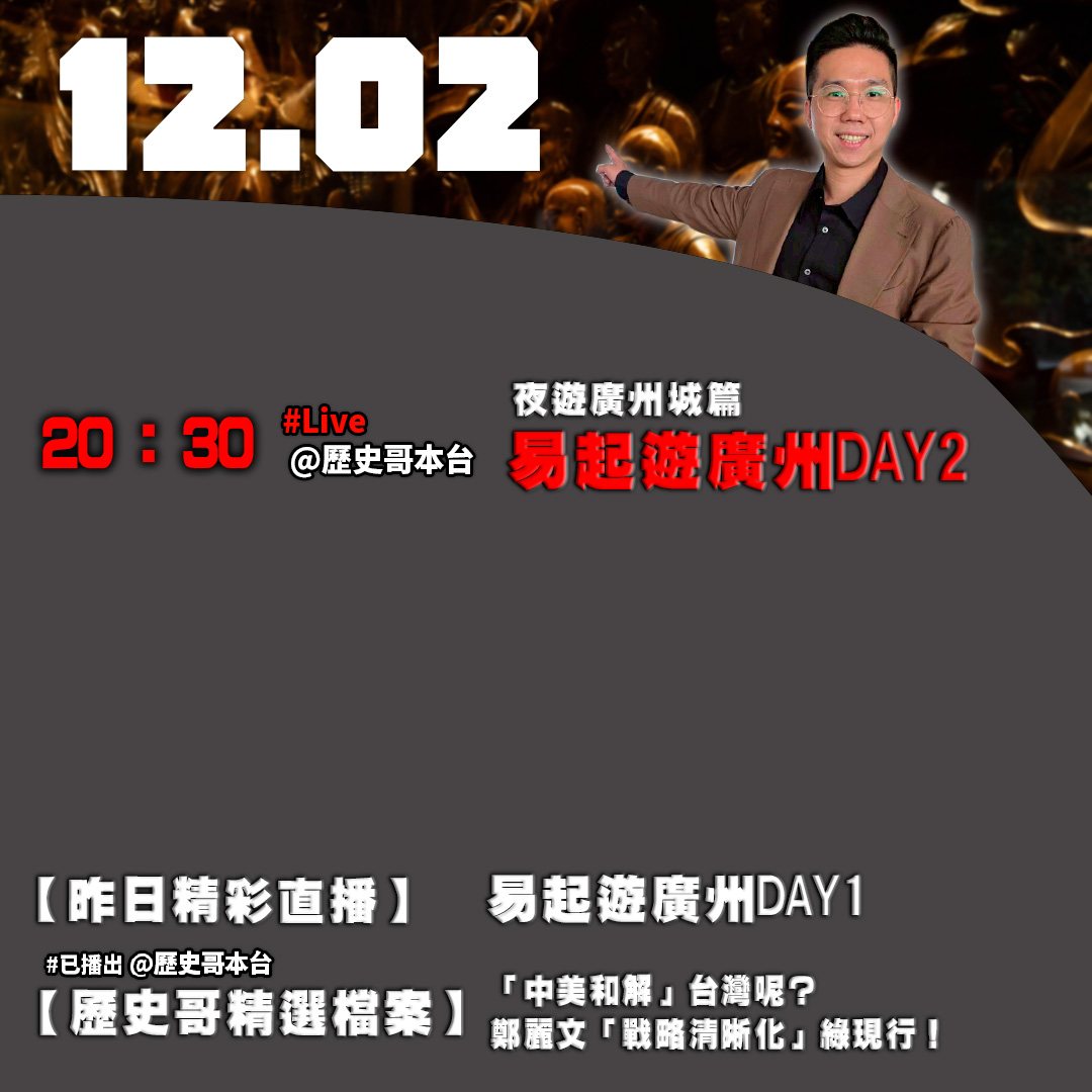 【12/2(二)歷史哥李易修忙什麼?】 20:30【易起遊廣州 Day 2 :夜遊廣州城篇篇】 【昨日精彩直播:易…