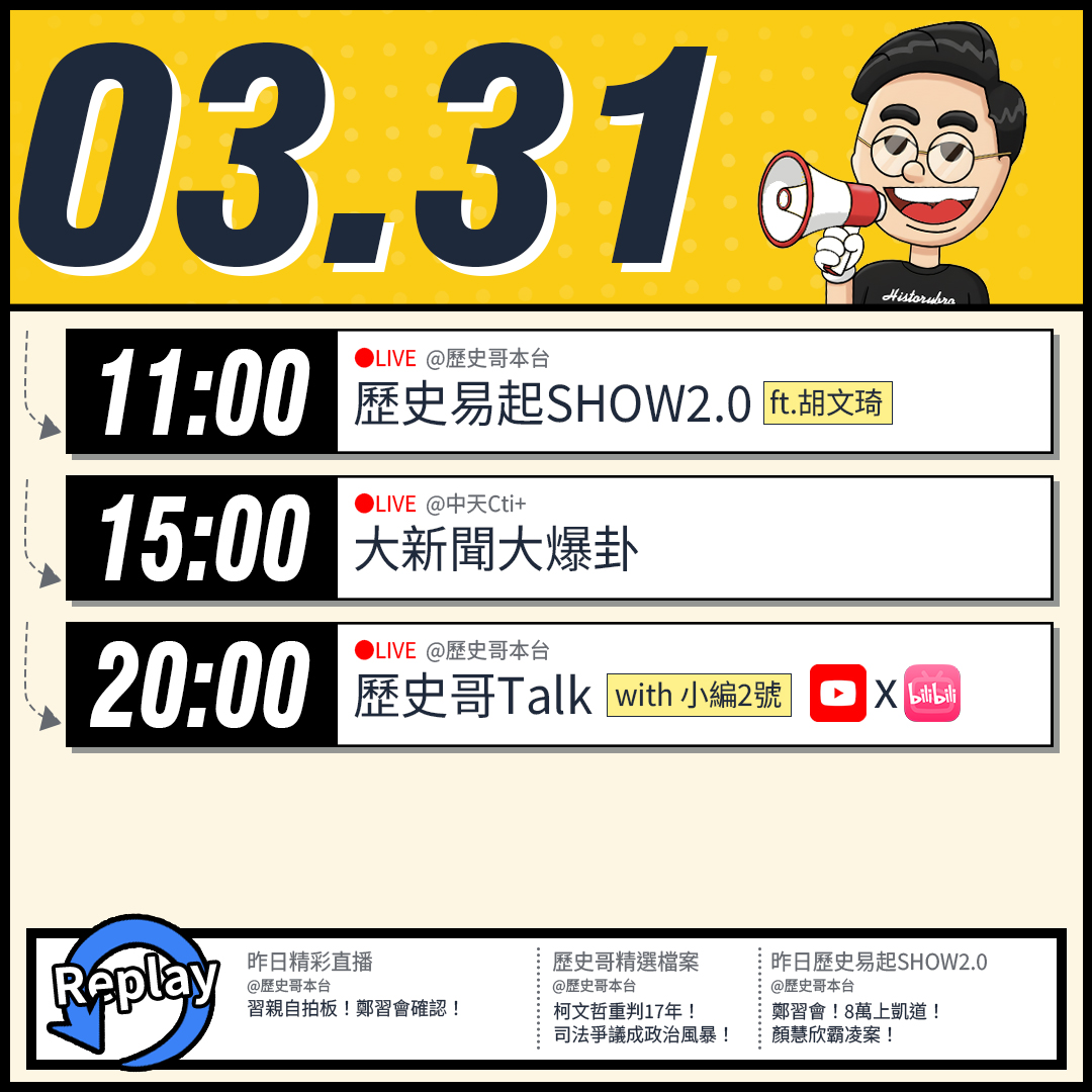 ⭐️【昨日精彩直播:歷史易起SHOW2.0|鄭習會!8萬上凱道!顏慧欣霸凌案!】