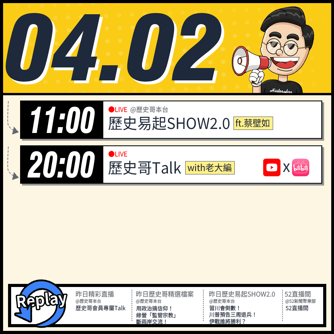 ⭐️【昨日精彩直播:歷史易起SHOW2.0|習川會倒數!川普預告三周退兵!伊戰誰將勝利?】