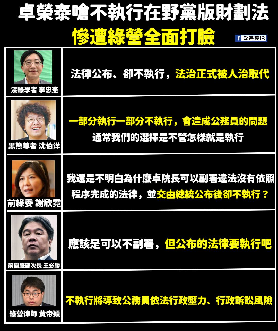 這讓綠營一些重視法治精神的人看不下去,賴政府目前整個荒腔走板,自己人都搞不懂的狀況下做一些莫名其妙的決策。