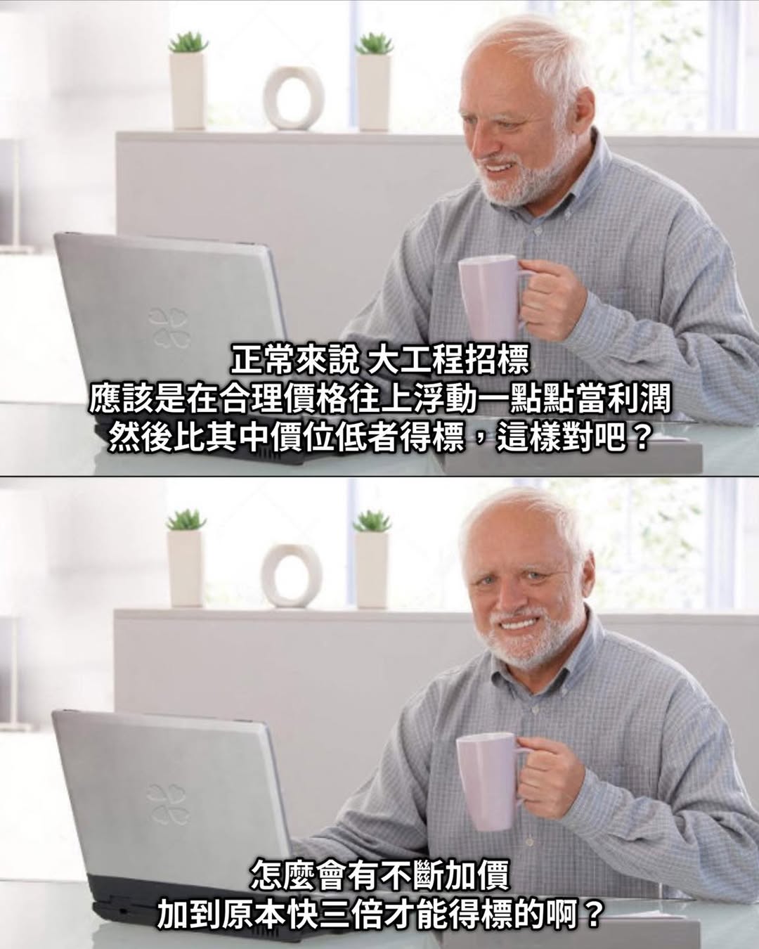 不可能吧? 估94億能成 報122億已經很賺了 怎麼還會跟廠商說我有錢不用怕, 讓廠商報價一直加 加到150億、220億…