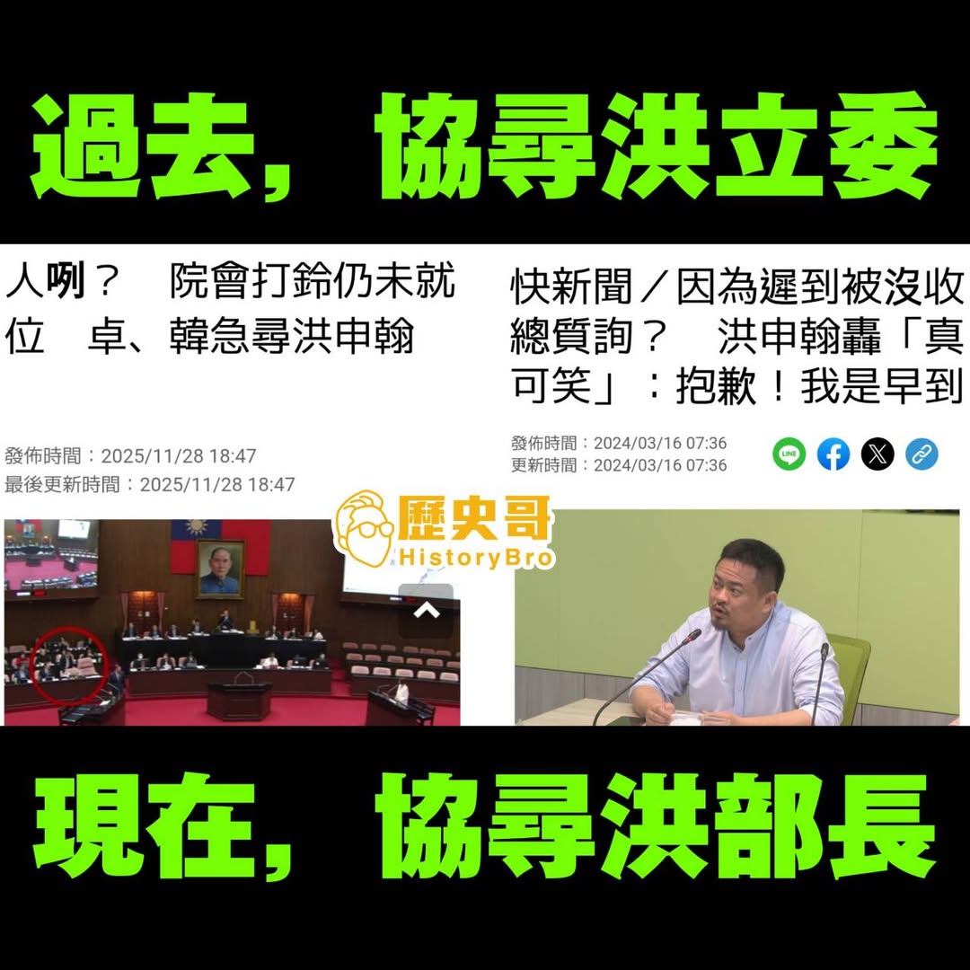 不知道洪部長這次是遲到還是早到? 質詢的時候也找不到 備詢的時候也找不到 這次應該不會衝院長辦公室了吧?