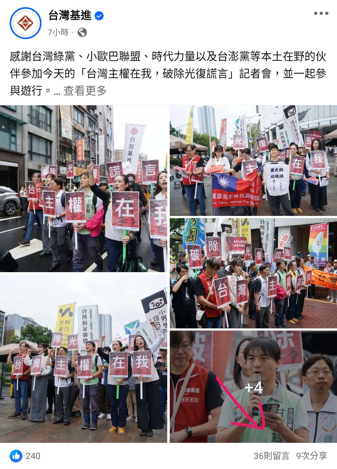 五個政黨相約一起遊行,參與人數不到15個,你們一黨出三個人都湊不齊嗎?建議下次不要自己辦了,去蹭同志的場子看起來會比較壯觀一點,那邊性別認同是水果奶奶的人說不定都比這照片裡的多。