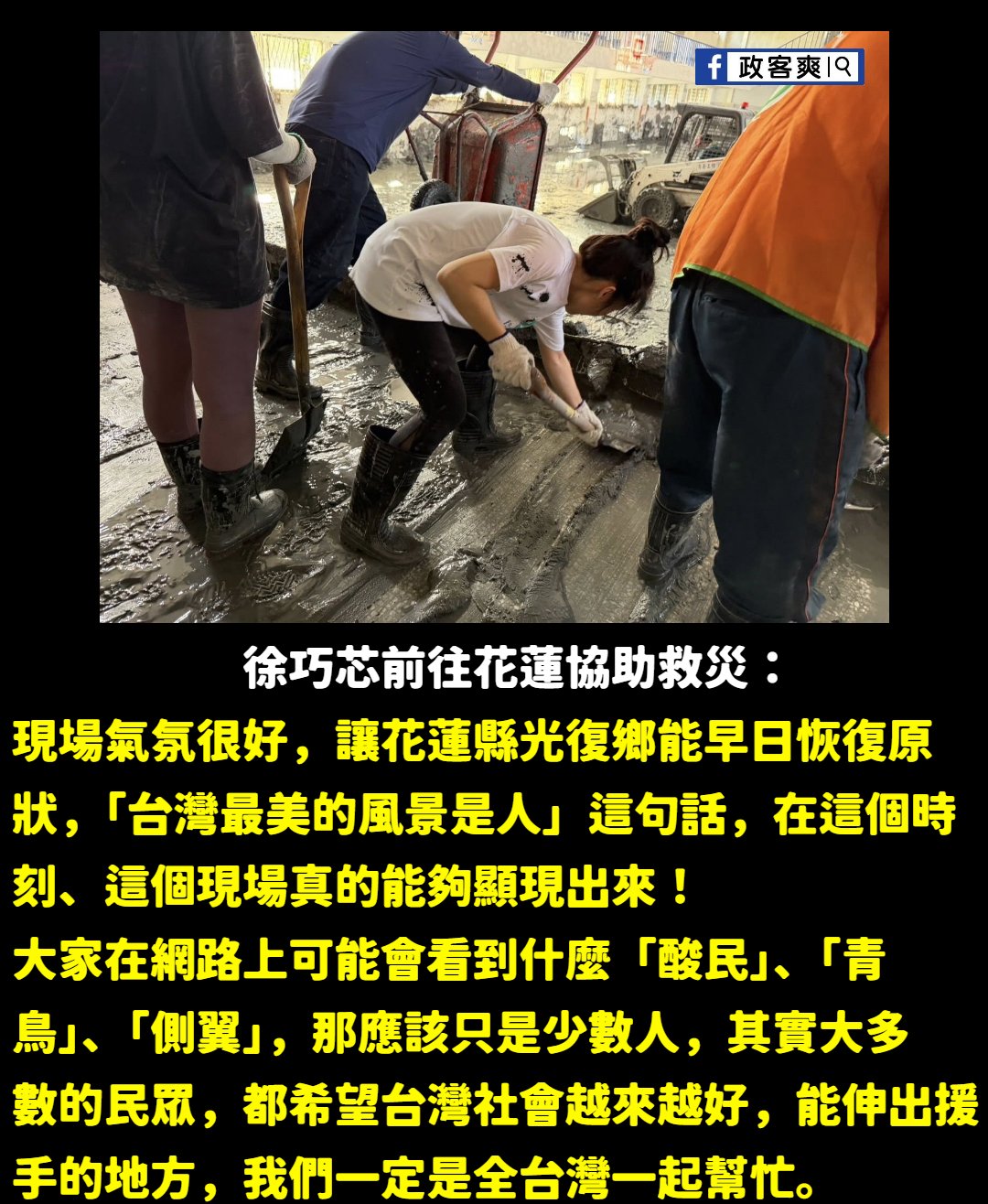 全台灣都在努力希望花蓮光復鄉能夠重建家園,只有青鳥側翼整天忙著打國民黨。 至今,有些人還是沒搞懂輸的原因在哪,從上至下都在想辦法製造仇恨、分裂,例如第一時間還在高層群組討論「怎麼打出殺傷力的反擊」。 轉載來源
