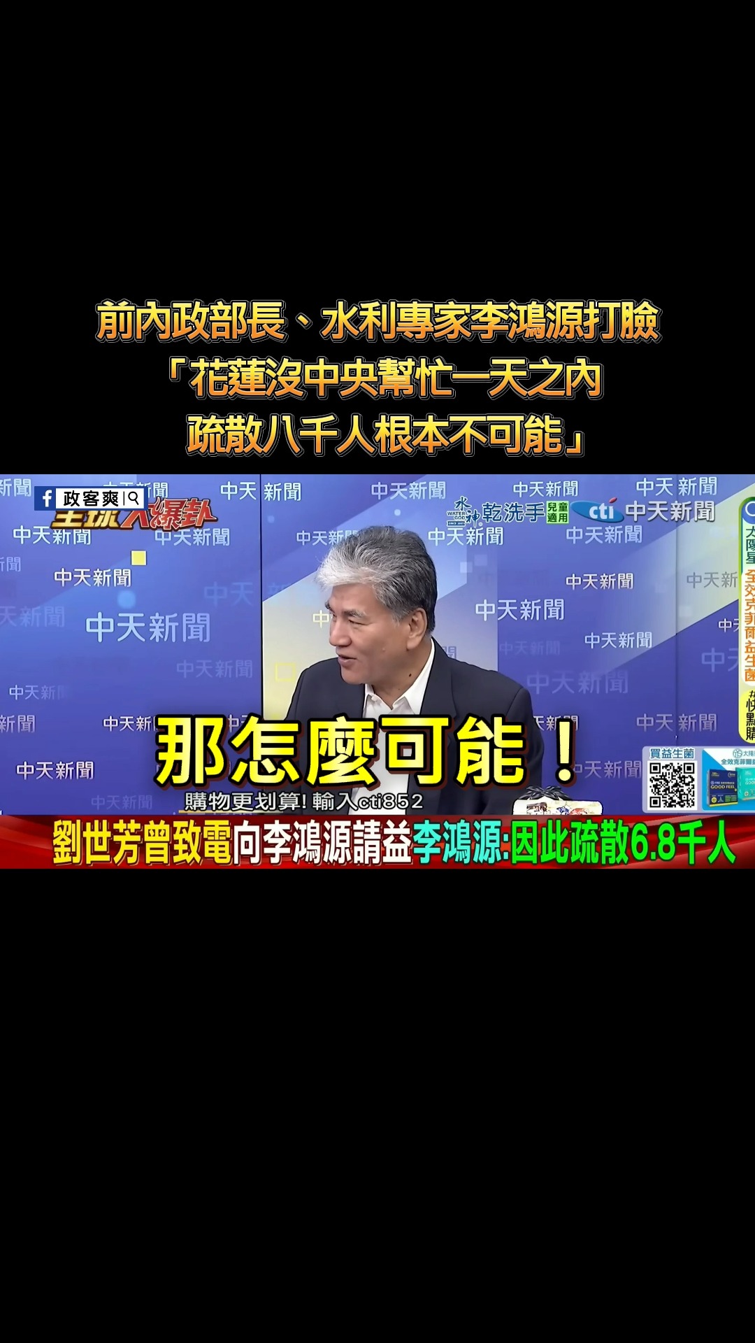 前內政部長、水利專家李鴻源打臉「花蓮沒中央幫忙一天之內疏散八千人根本不可能」 「農業部之前預估六百人,結果跟實際淹水深度、淹水範圍有落差」 轉載來源