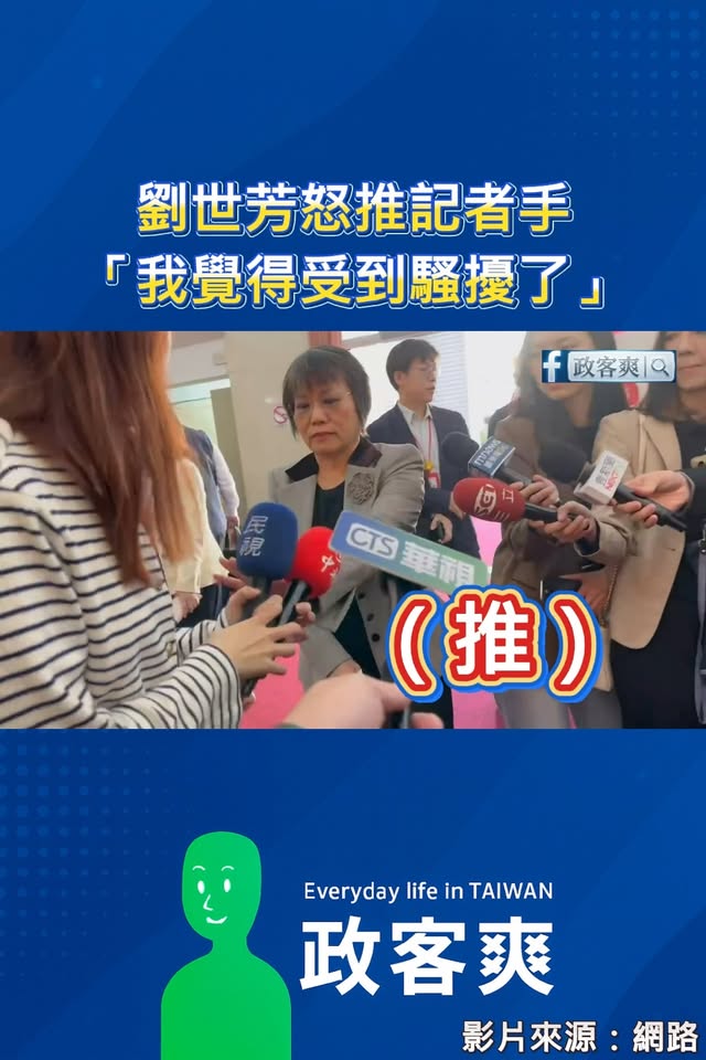 劉世芳怒推記者手「我覺得受到騷擾了」 這是明顯的麥克風敏感症候群,請大家注意,世芳部長不高興了! 訪問記得要唱島嶼天光才可以問。 轉載來源