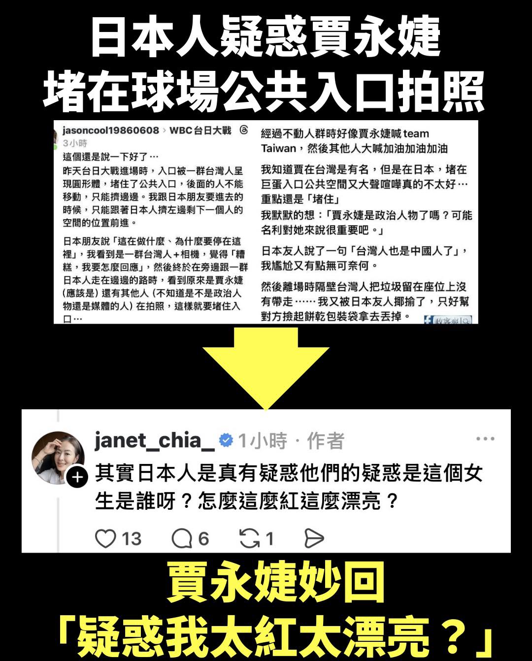 今天這個人我們換一個名字好了,假如是台灣某位一般民眾擋住公共空間的入口,結果日本人質疑這樣的行為沒禮貌,這位民眾還回:「疑惑我太紅太漂亮?」