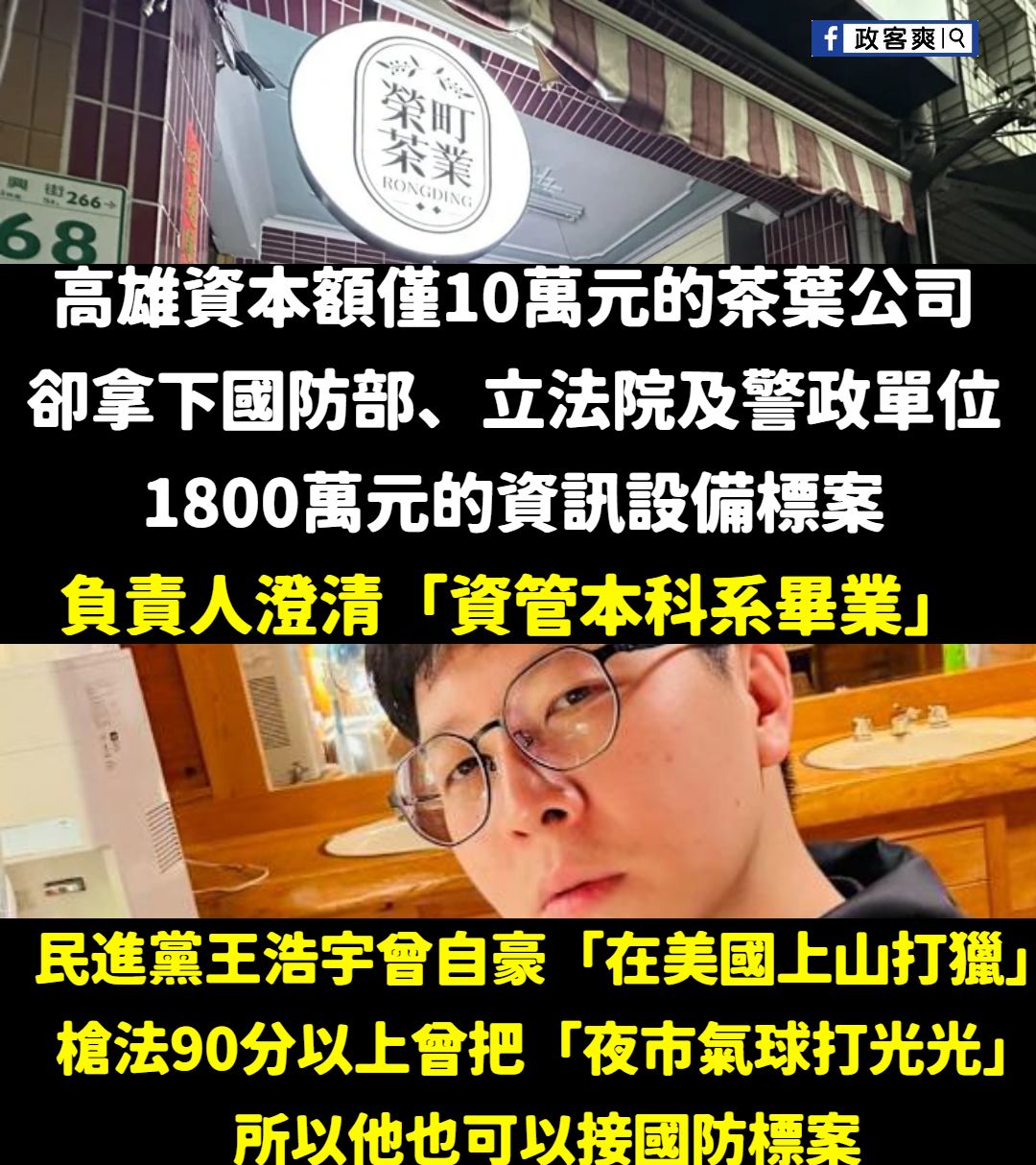 原來資管系畢業就可以接國軍電腦兵推的標案 那這樣王浩宇曾宣稱他的「曾把夜市氣球打光光」又是做襪子生意的,應該也可以去標一下國防部的標案,也可以承攬國軍襪子標案。 我也自薦一下,我小學拿過安親班萬聖節裝扮比賽冠軍,我認為完全有能力得標「國軍迷彩服設計標案」。 轉載來源
