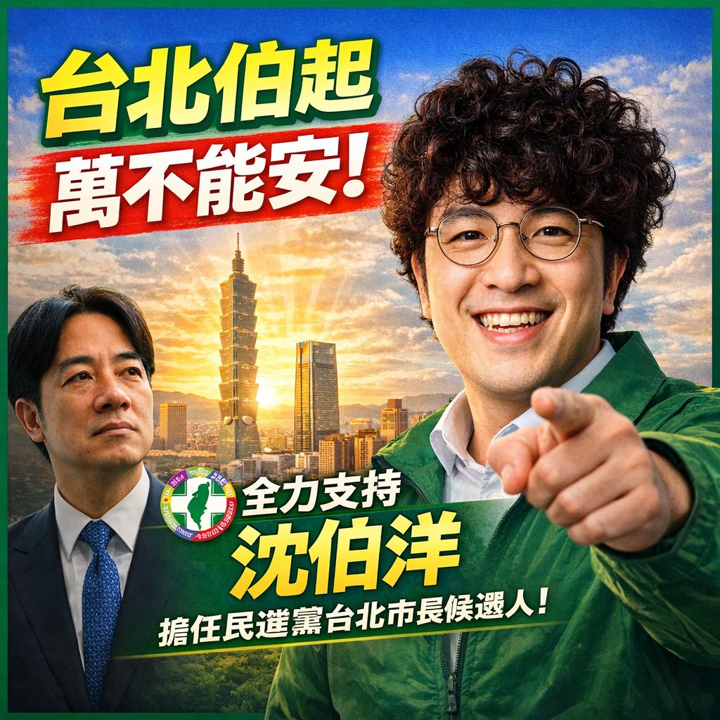 台北伯起,萬不能安! 全力支持沈柏洋擔任民進黨台北市長候選人!