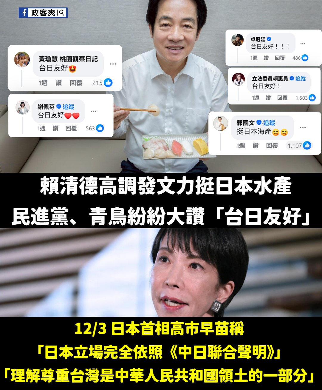 現在賴清德應該拍一個影片,把日本水產丟在地上,大喊「台灣就是台灣,不是中國!難吃的要命」