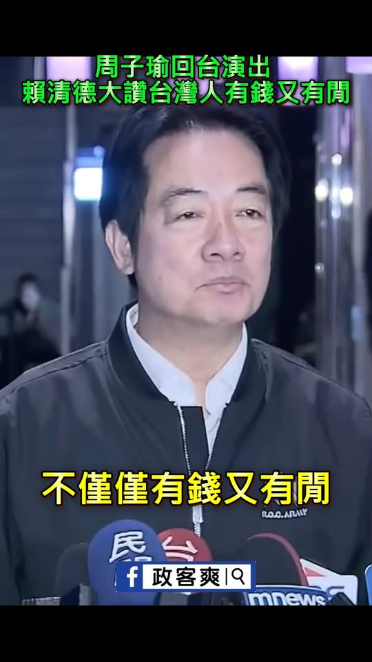 周子瑜回台演出,賴清德大讚是因為台灣人有錢又有閒、經濟進步 按照這個邏輯,全世界的人都很有錢,賴清德實現全球致富 轉載來源