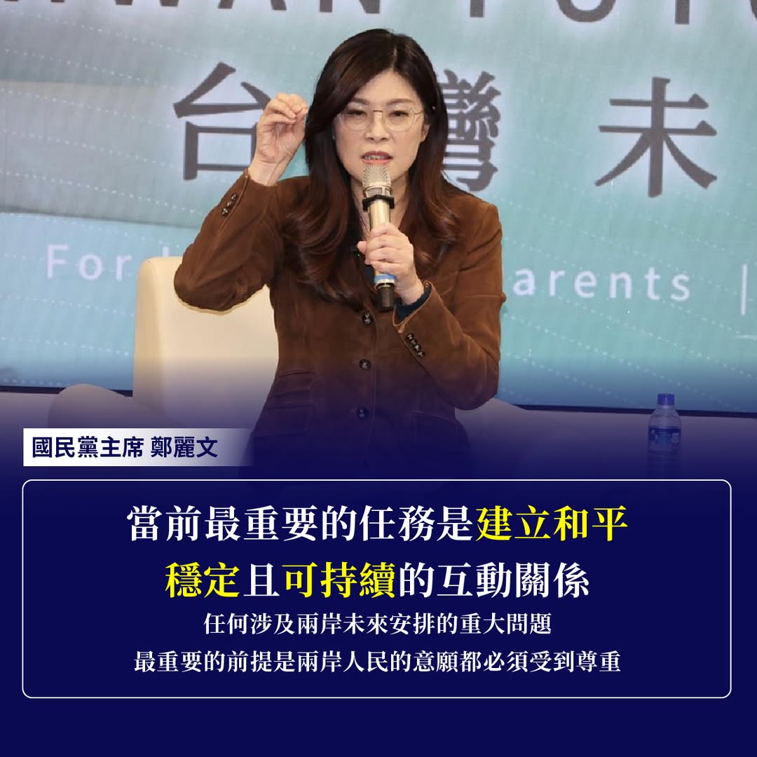 在兩岸局勢充滿變數的當下,鄭麗文強調,真正關鍵不在對抗,而在於建立長久且穩定的互動機制。唯有以和平為基礎、以民意為依歸,才能為未來找到可持續的出路。面對重大選擇,尊重人民意願不僅是原則,更是不可退讓的底線。這不只是政策方向,更是對世代未來的責任與承諾。