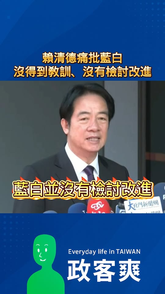 大罷免被32:0、被民意打臉的賴清德痛批藍白「沒得到教訓、沒有檢討改進」
