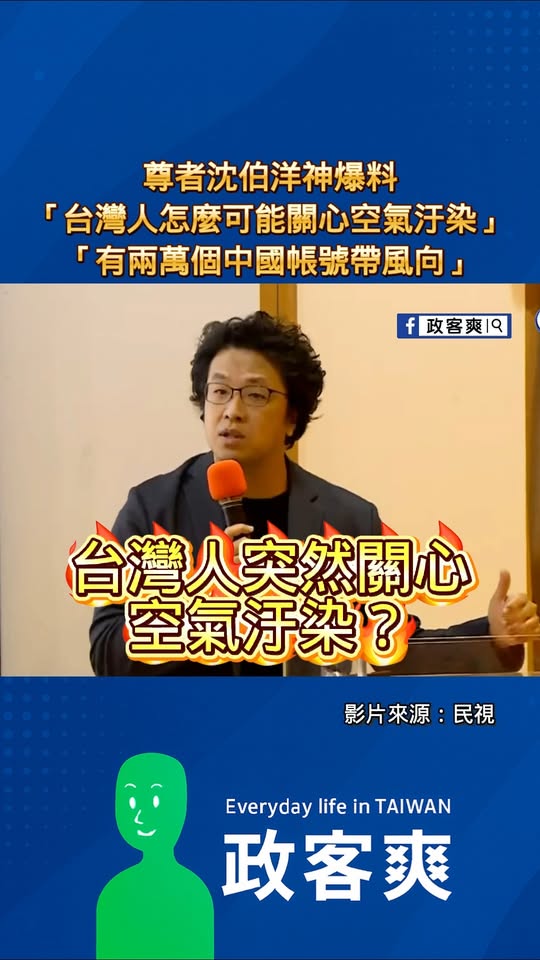 尊者沈伯洋神爆料「台灣人怎麼可能關心空氣汙染?」「有兩萬個中國帳號帶風向!」