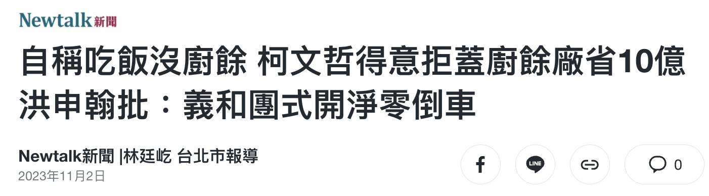 民眾黨總統參選人柯文哲昨日舉行氣候政策記者會,直言他市長任內「打掉」10億元的廚餘處理廠計畫,因為他吃飯「從沒有廚餘」,也要訓練市民這麼做。