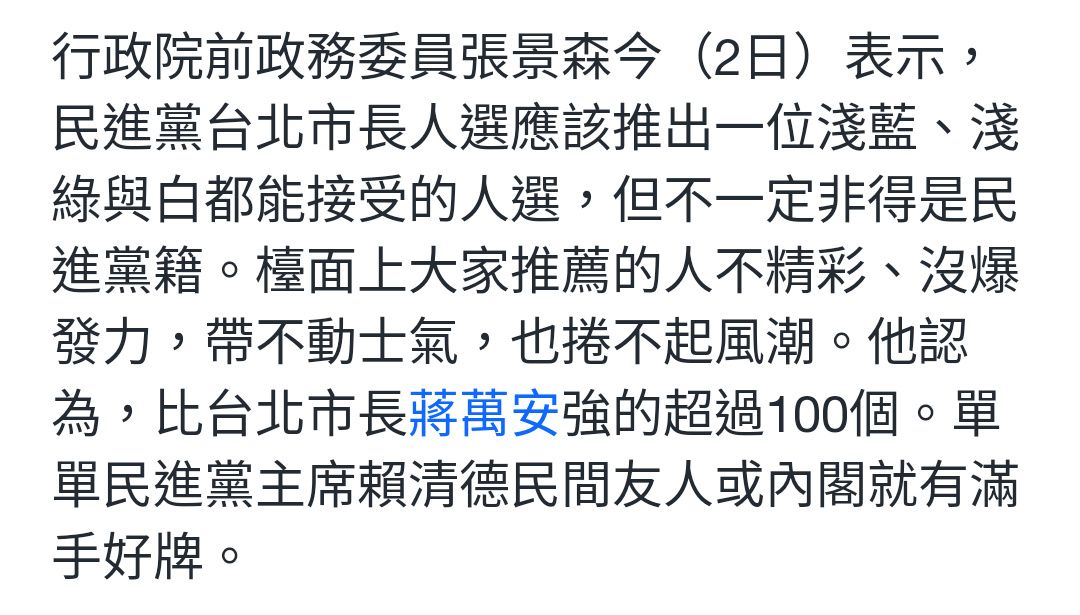 張景森這意思是說,農農要禮讓給信賴之友會的金主們出來參選是嗎?