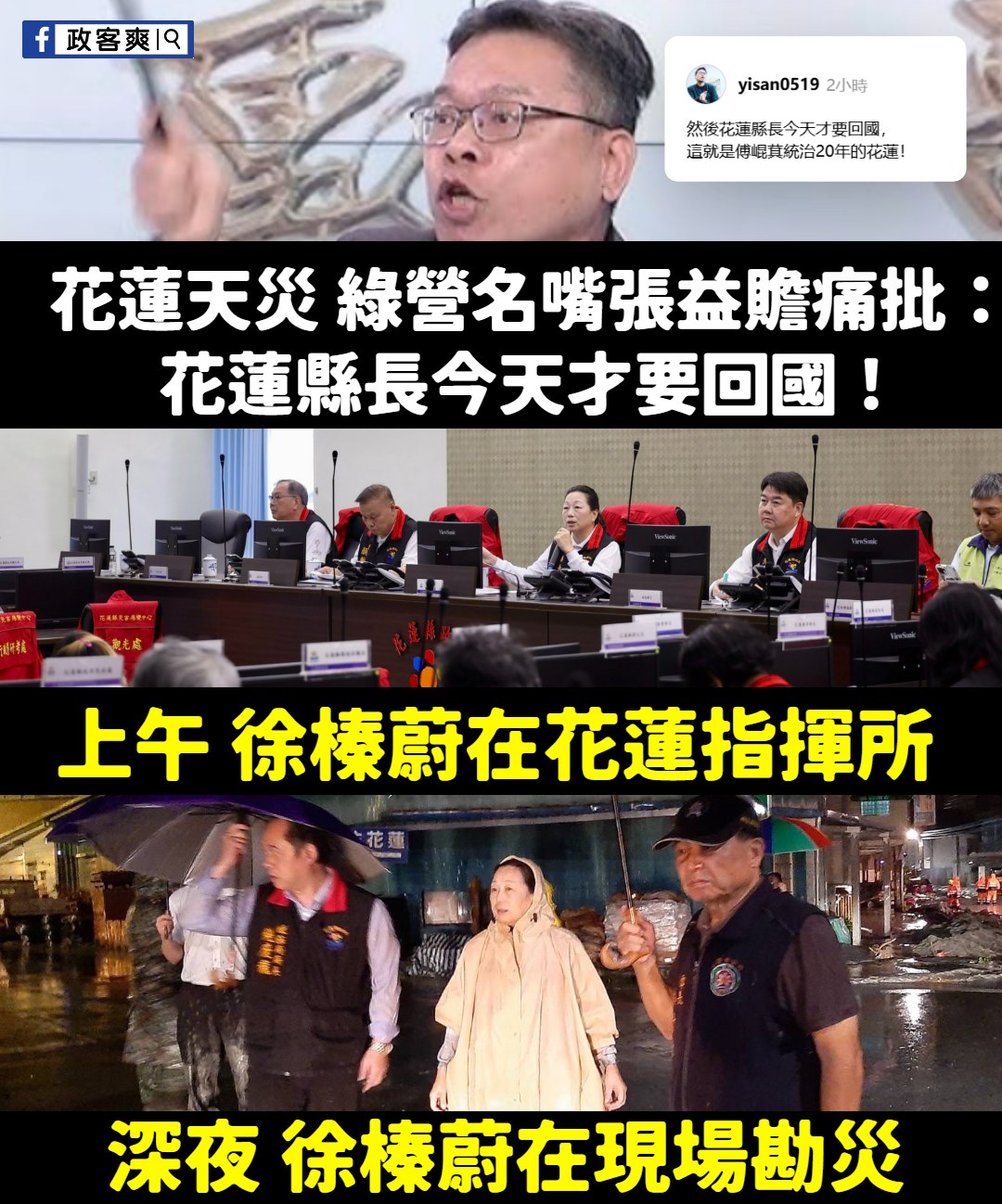 第一步打開花蓮縣長徐榛蔚的臉書,可以發現深夜她在現場勘災。