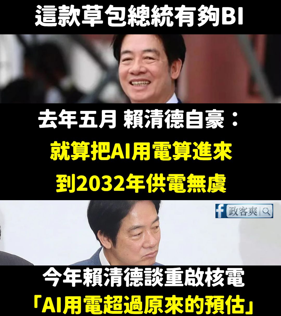 從重啟核電,就能看清楚有賴清德這款草包總統有夠「BI」