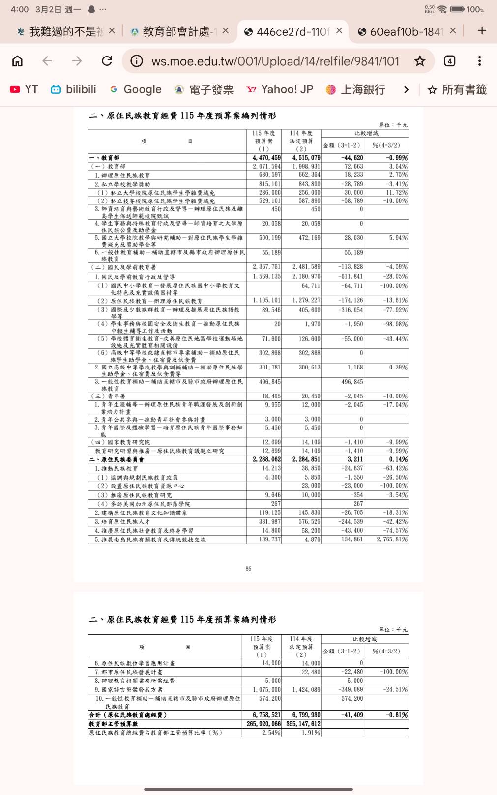 △ 為什麼教育部國民及學前教育署主管的「#辦理原住民族教育業務經費」減少了1.8億?「#辦理及推廣原住民族語教學業務經費」減少了3.1億?