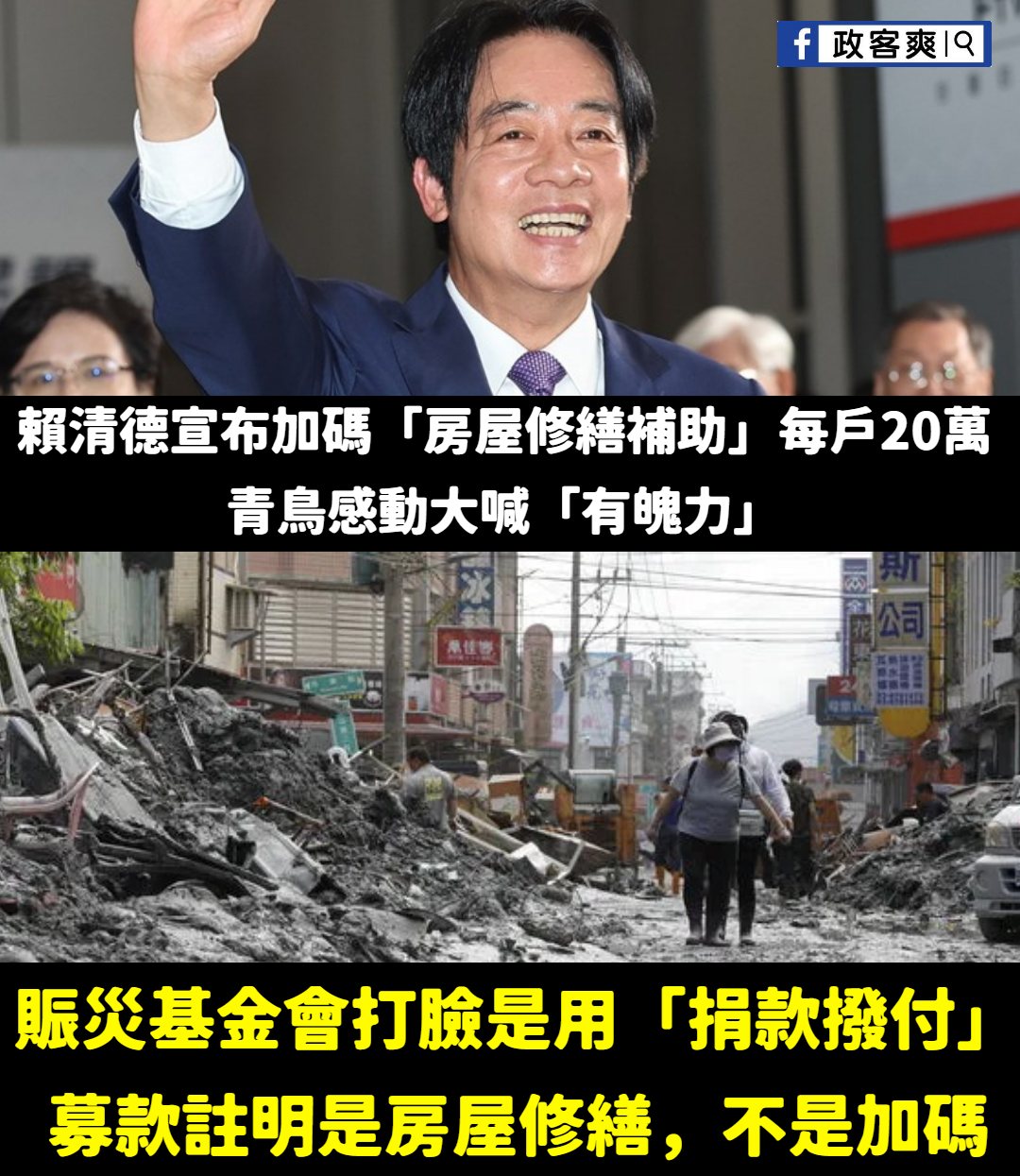 捐款就捐款,硬要喊什麼政府加碼 差點變成賴清德做功德 轉載來源