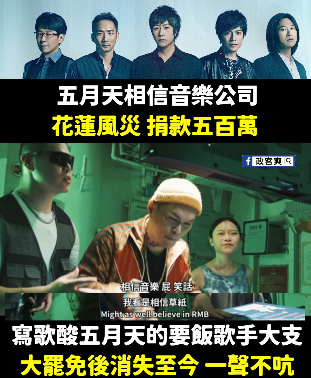 有能力在大罷免期間嘔心瀝血創作歌曲酸五月天、打擊在野黨,沒有一點點聲音去為災民送暖。