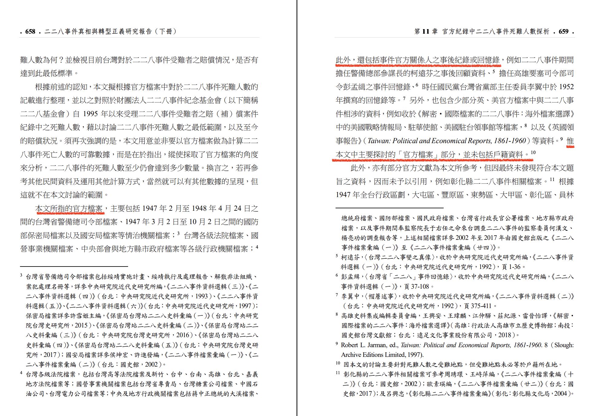 這篇投書中提到 #二二八基金會 推估死難人數「綜合戶籍資料」,他肯定不知道,我們一直在罵的,就是基金會在推估人數的時候,居然把相對最準確的「戶籍資料」自始排除了!(如圖)
