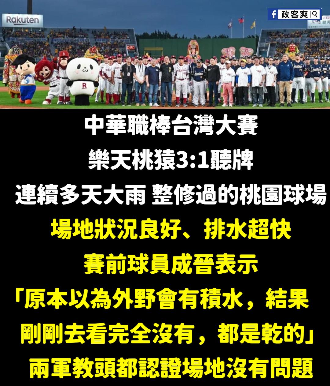 比賽前,桃園市長張善政並沒有歸功於自己,而是認為是政府跟球團的通力合作,持續優化排水與整備機制,讓場地在雨停後能迅速恢復到場地比賽條件狀態。