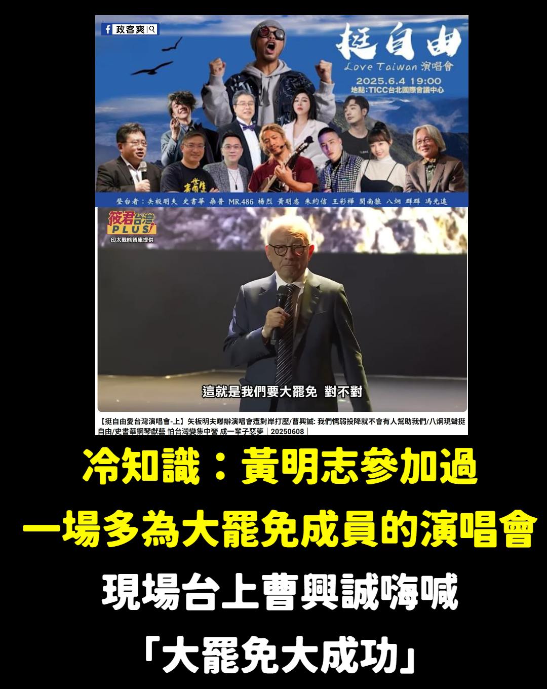 欸欸,青鳥不要急著想切割黃明志,當初不是還一堆盤子花五千元去聽這大罷免演唱會嗎? 黃明志今年參加過一群挺大罷免的人舉辦的演唱會,現場開頭曹興誠馬上就喊大罷免大成功,演唱會結尾更是一群罷免志工在台上喊「大罷免大成功」做結束。 這演唱會一張票還要價五千元,聽一堆爛歌結果大失敗,笑死。 轉載來源