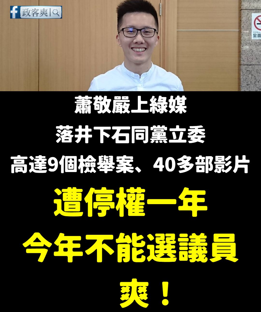 蕭敬嚴被停權一年,也就是「理論上」今年無法參選議員,實際上我們仍要仔細觀察後續有沒有開後門。