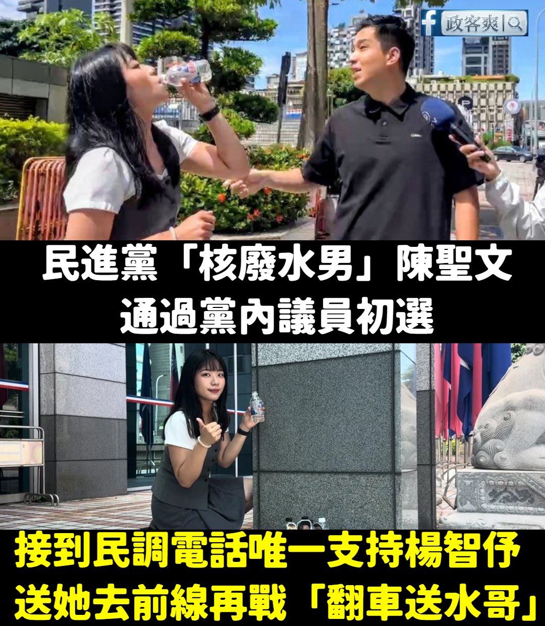 民進黨「送核廢水的翻車大將」陳聖文通過民進黨議員初選了,如果明明「喝下核廢水」贏了這一局的楊智伃卻無法通過初選,那綠營真的會笑爛。