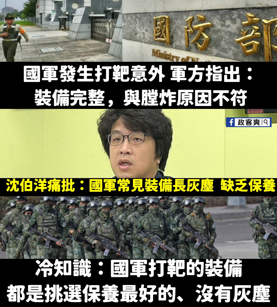 民進黨立委中代表國防的就是沈伯洋,然而打靶意外軍方已經說了跟膛炸無關、裝備完整