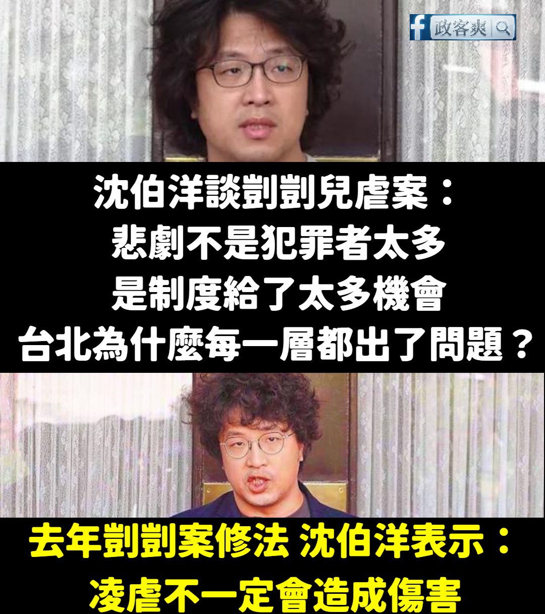 沈伯洋尊者表示:「悲劇不是犯罪者太多,是制度給了太多機會」 制度當然有問題,但過去民進黨為什麼在立法院阻擋國民黨修法加重虐童刑責(最高可判死刑)? 把悲劇完全推給制度,只是在幫犯罪者開脫罪大門,忽視了每個人都該為自己的選擇負責。 犯罪者太多跟制度不完善是「共存且相互影響」,難道只要制度完美,就不會有悲劇? 台北本身問題不多,沈伯洋自己問題比較大,連凌虐不一定會造成傷害這種鬼話也能講得出口。 轉載來源
