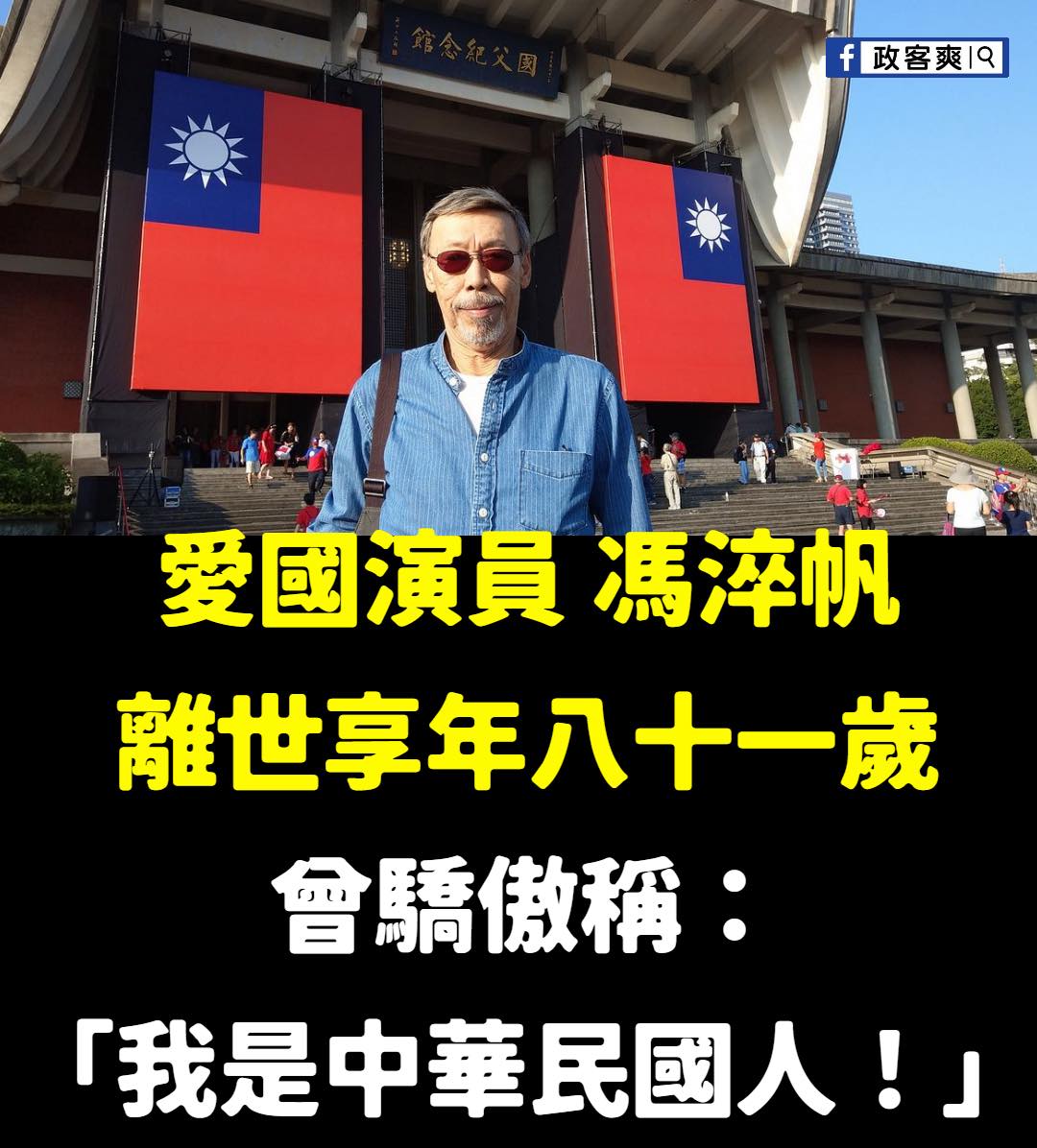 熱愛中華民國的資深演員馮淬帆,享年81歲離開了。