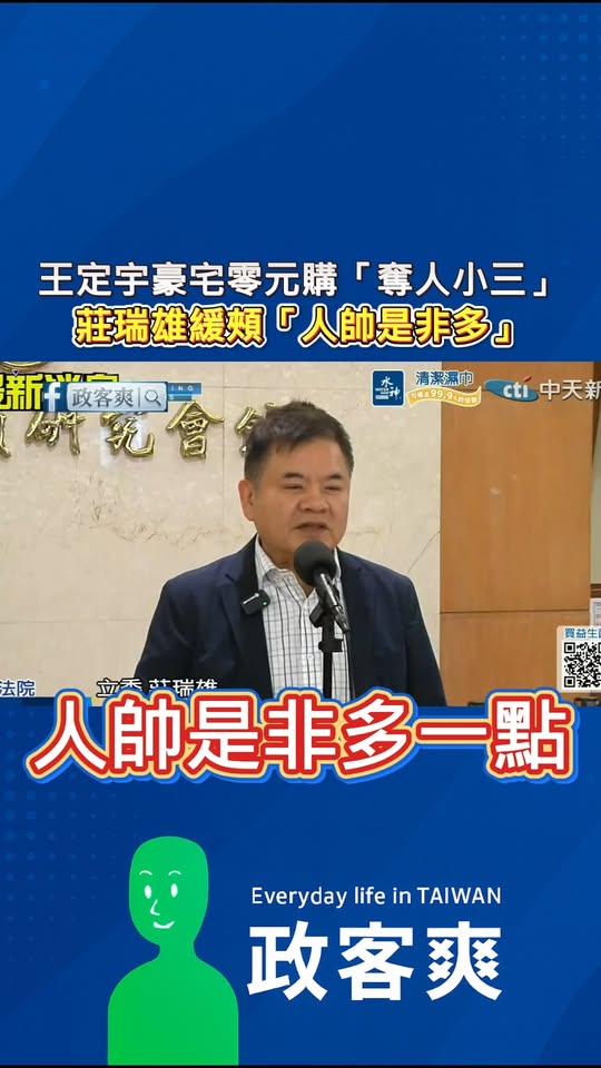 王定宇豪宅零元購「奪人小三」,莊瑞雄緩頰「人帥是非多」 轉載來源