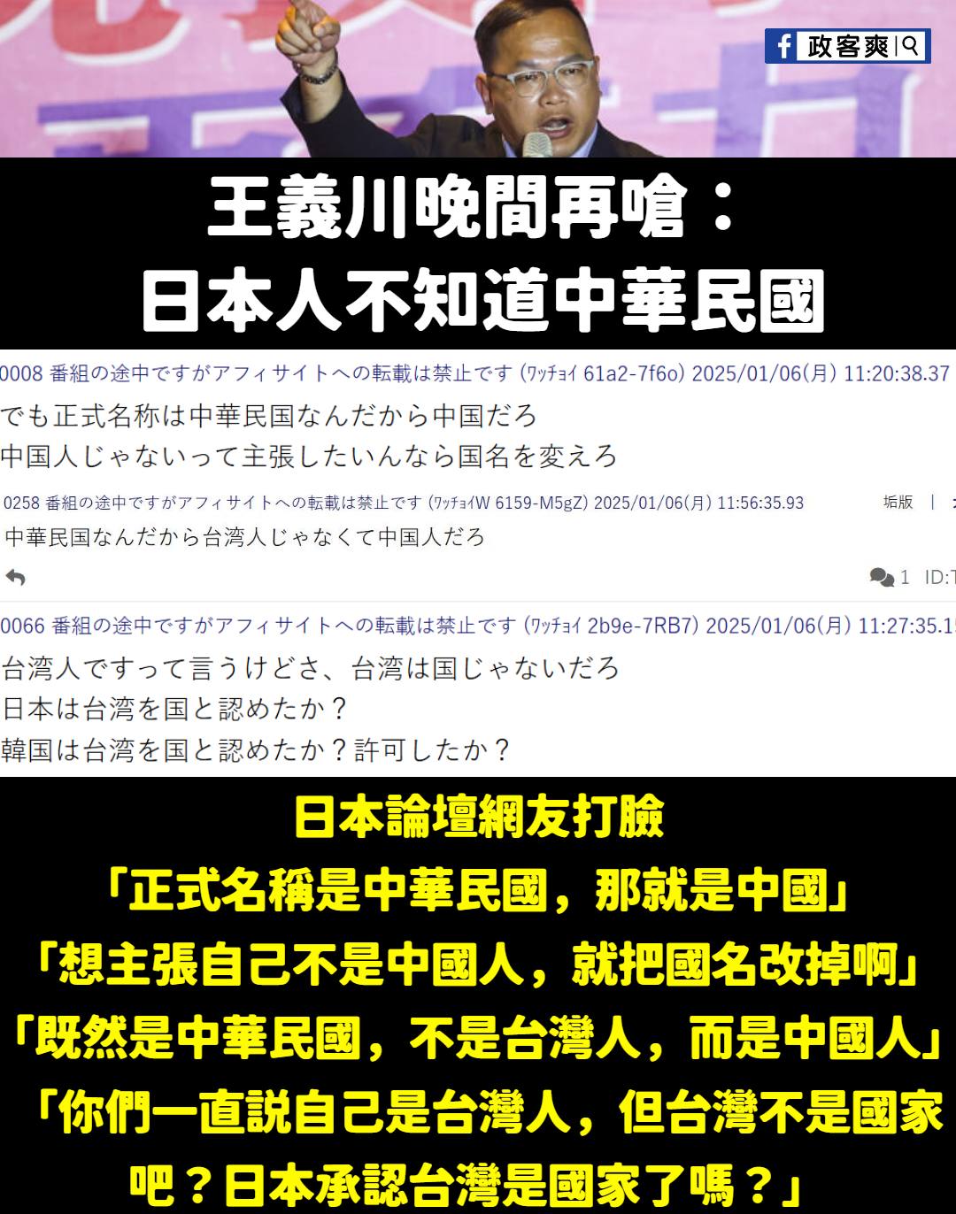 王義川在政論節目上嗆去日本寫台灣國是因為「日本人不知道中華民國」 喜哩哈囉,你確定嗎? 在今年一月份日本論壇5ch就…