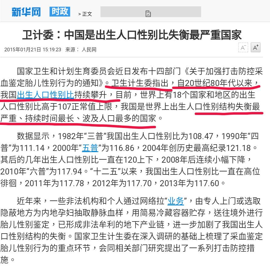 真的是服了,連一胎化造成人口性別失衡也有人要洗,你不信我,起碼要信數據吧?大陸自己公布的數字出來就是這樣,還要扯什麼「一胎化沒有影響性別比」、「淪陷區沒有重男輕女」、「彩禮沒有很高」云云,那是說官方都在造謠?