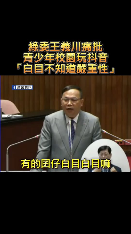 綠委王義川痛批青少年校園玩抖音 「白目不知道嚴重性」 轉載來源