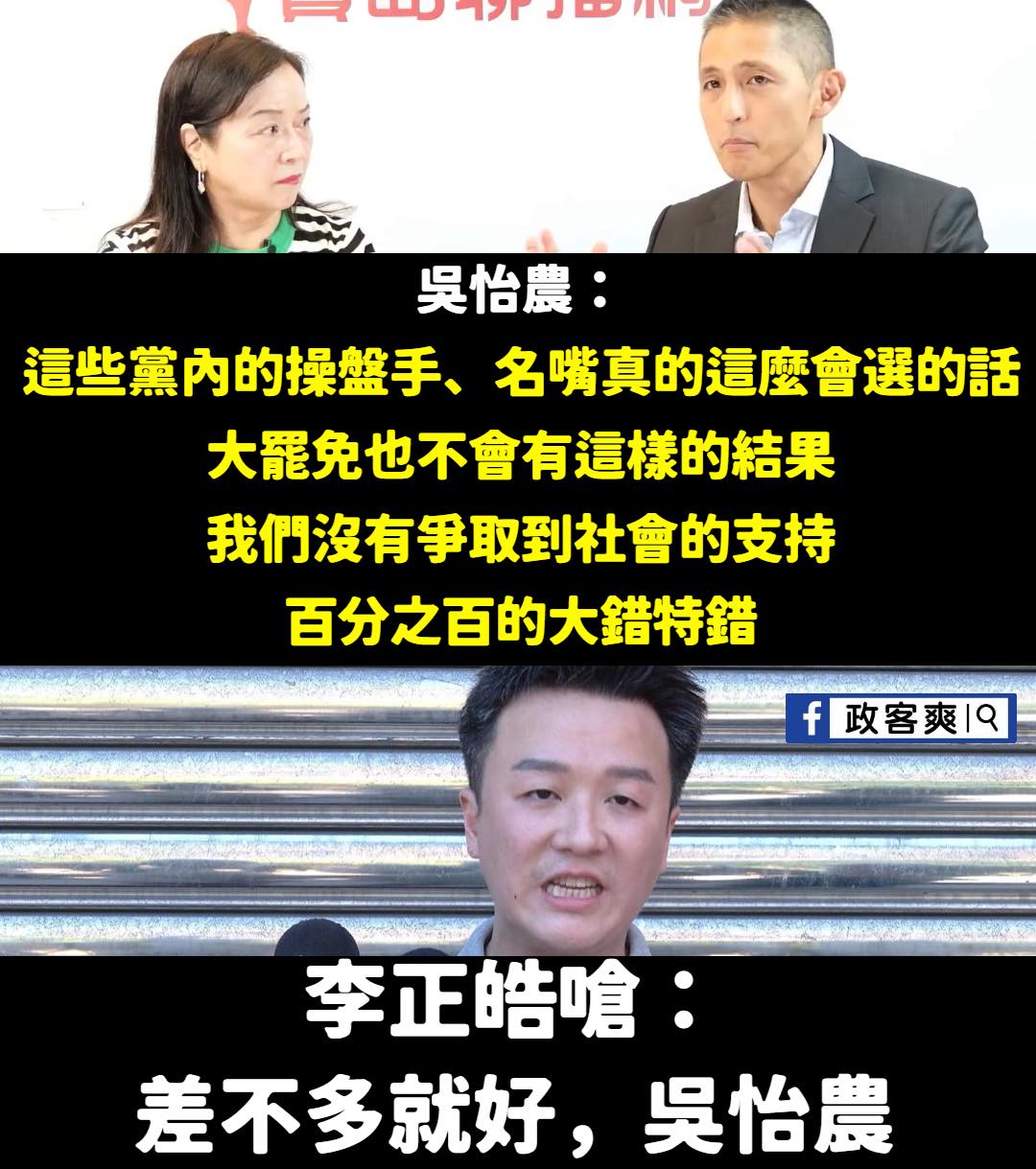 綠營內戰,吳怡農覺得民進黨大罷免大錯特錯、黨內操盤手跟名嘴都很廢。 結果慘遭李正皓怒嗆「差不多就好」。 說實話32:…