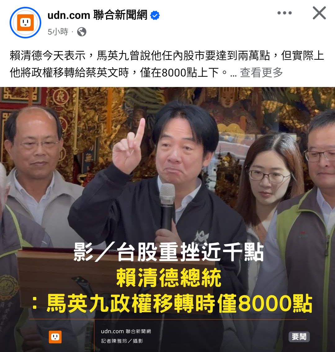 股票漲跌本來與總統無關,但你這一嘴就跟你有關了,股票跌,怪10年前的總統,這樣對嗎?