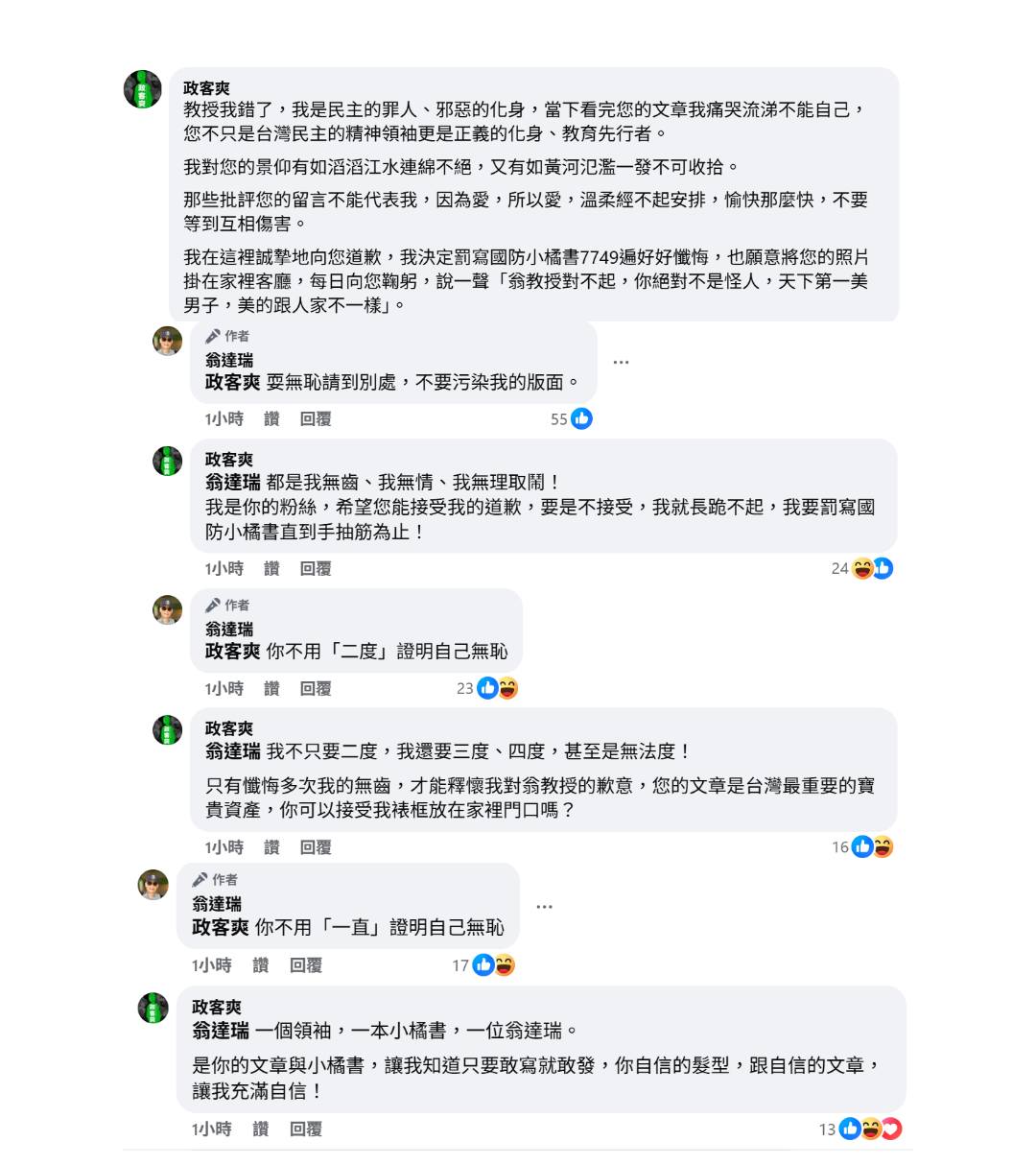 與翁教授一場深化民主的促膝長談 邪惡的我,已經被淨化了心靈,感覺擁有崇高的靈魂了 對於翁教授的愧疚感,已讓我無法自拔,我有罪,我是邪惡的人,我好evil,害翁達瑞好emo。 我一定是比鄭麗君更難纏的對手!(握拳 轉載來源