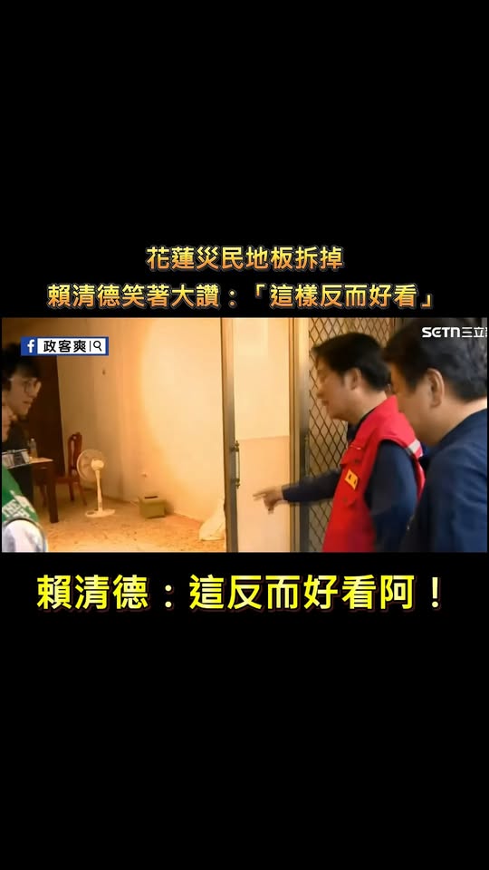 花蓮災民地板拆掉,賴清德笑著大讚:「這樣反而好看」 這樣的意思是不是說,水災來了,造成地板拆掉,成功讓整個家更美? …