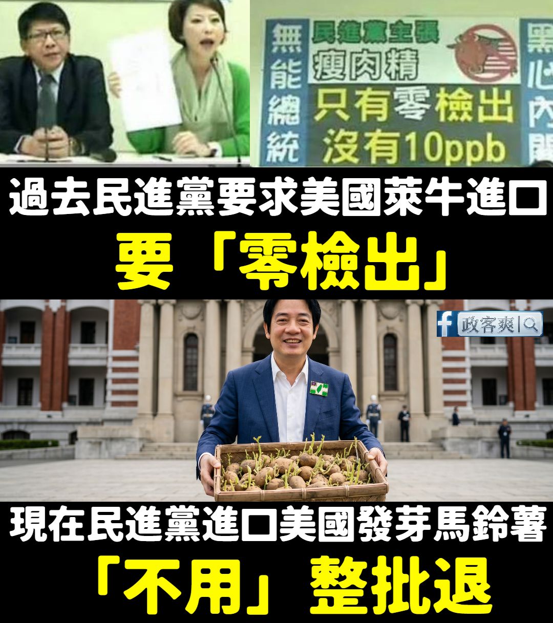 萊牛要零檢出,發芽馬鈴薯不用整批退 民進黨這種雙標式的執政方式,也是滿特別的 轉載來源
