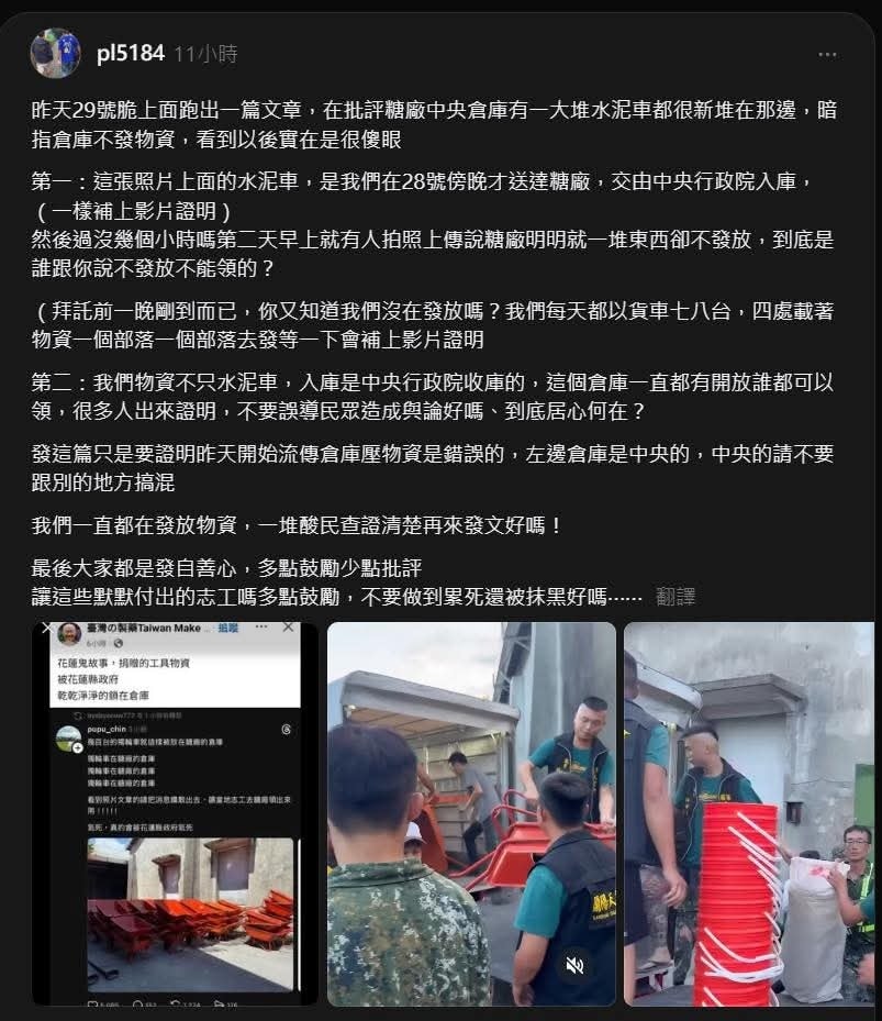 行政院收下的物資 沒多久就有人出來發文說地方政府壓著物資不發