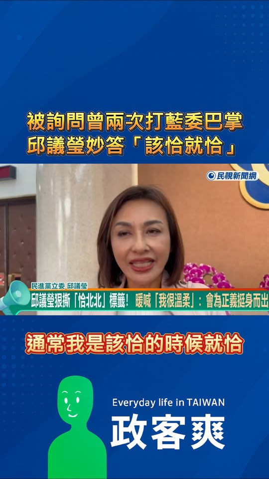 被詢問曾兩次打藍委巴掌,邱議瑩妙答「該恰就恰」 不愧是一代宗師的發言,以後大家去路上看到不爽的人,可以直接來一個閃電五連鞭的巴掌,被警察抓的時候就說「該恰的時候就恰」 轉載來源