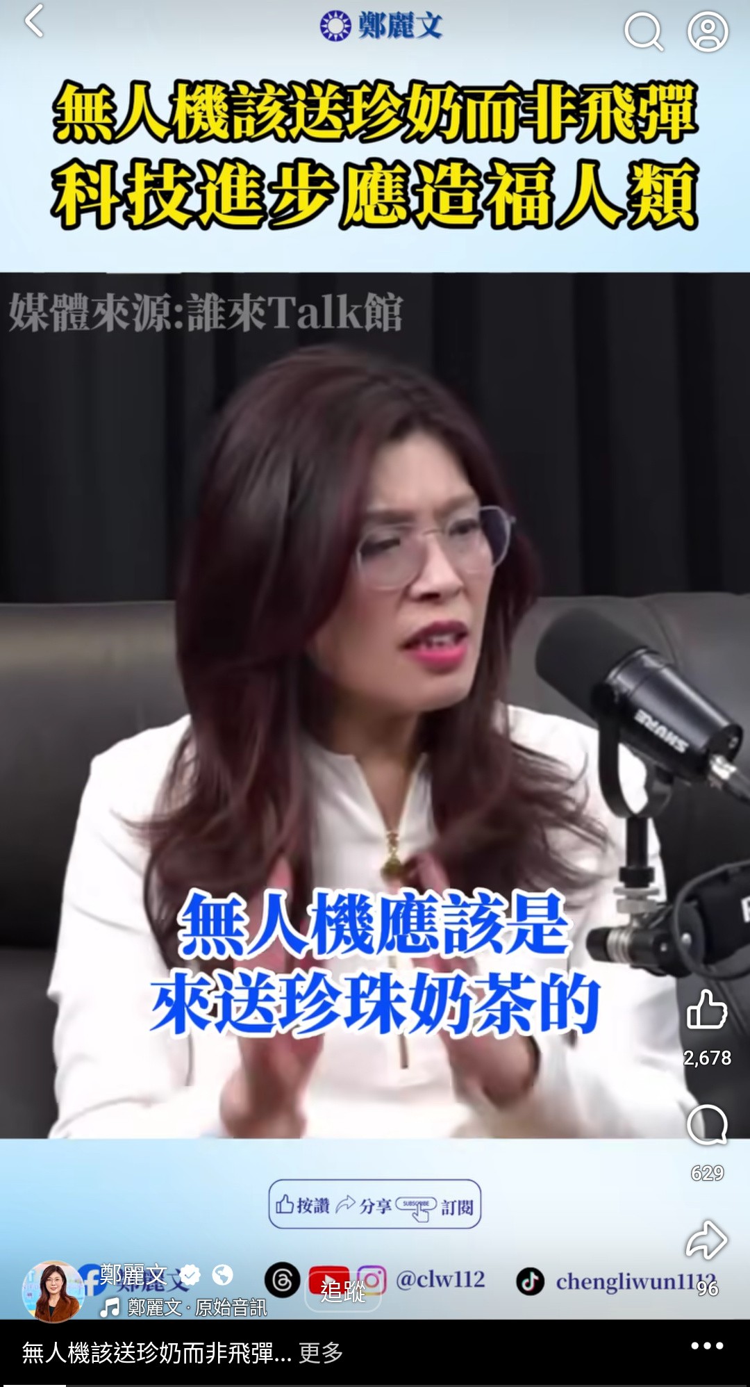 大嘴婆大概覺得自己想出一個金句,很得意的剪出來砸錢下廣告(我沒追蹤她,這影片是自己跳到我臉書上,不知道下了多少錢的廣告),我真的拜託,已經不是名嘴了,不要再自以為金句了,活在自己幻想裡,每次胡言亂語都是講給別人笑的,她自己不要選,別人還要選咧。